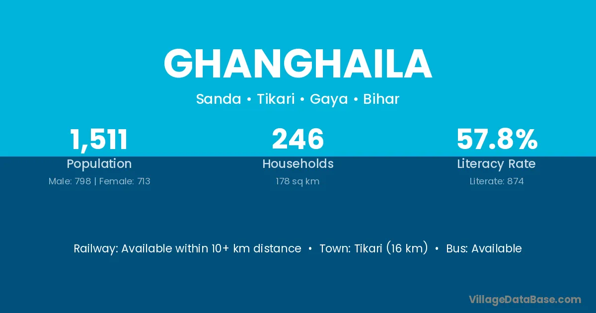 Tikari (16 km) is the nearest town to Ghanghaila village for major economic activities and is located approximately 16 km away.