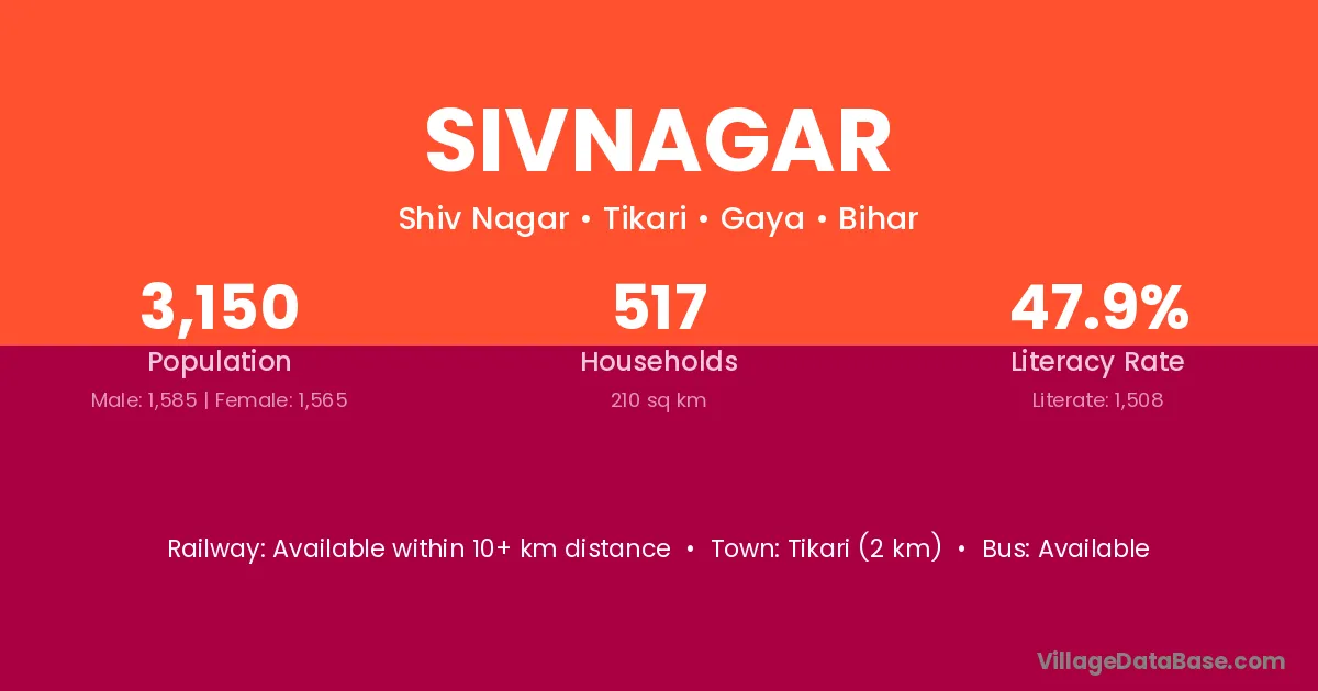 Tikari (2 km) is the nearest town to Sivnagar village for major economic activities and is located approximately 2 km away.