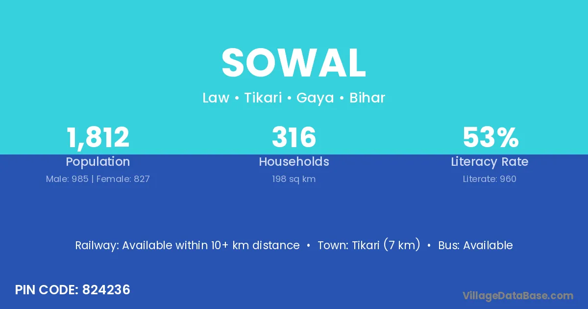According to Census 2011 information, the village code of Sowal village is 824236.