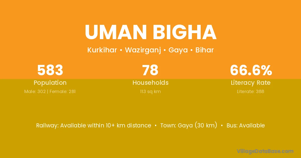 Gaya (30 km) is the nearest town to Uman Bigha village for major economic activities and is located approximately 30 km away.