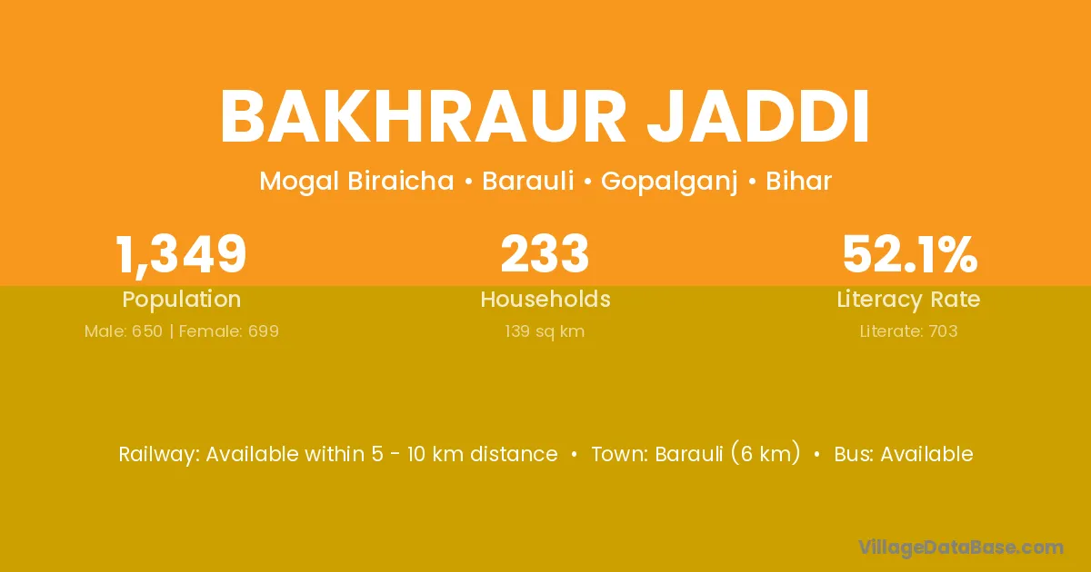 Barauli (6 km) is the nearest town to Bakhraur Jaddi village for major economic activities and is located approximately 6 km away.