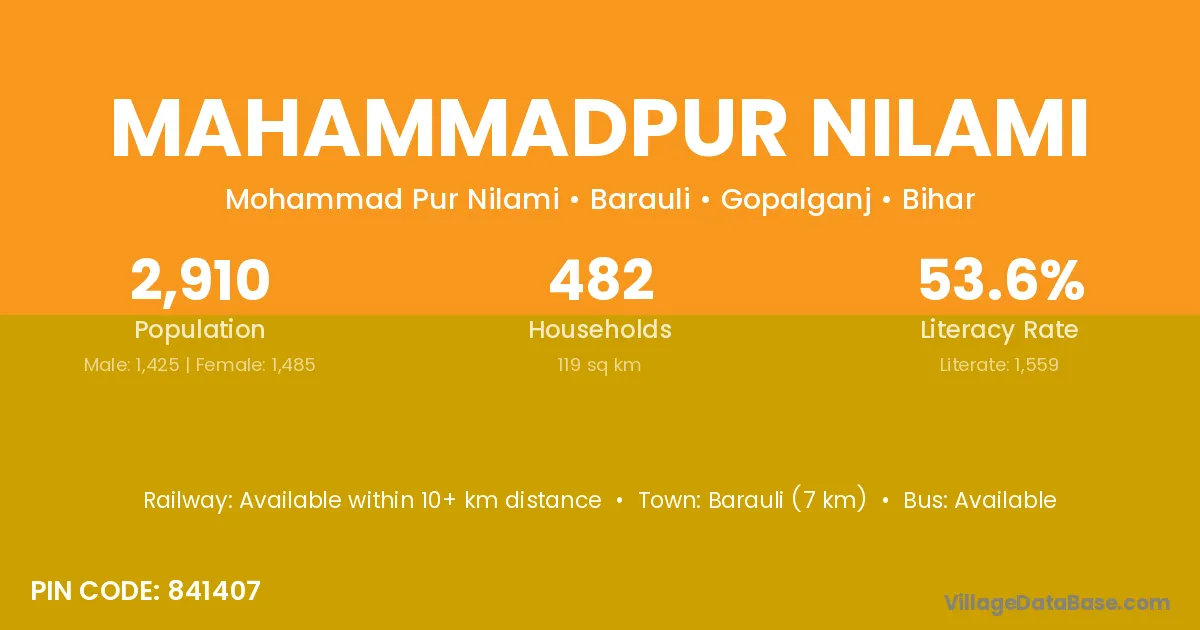 Barauli (7 km) is the nearest town to Mahammadpur Nilami village for major economic activities and is located approximately 7 km away.