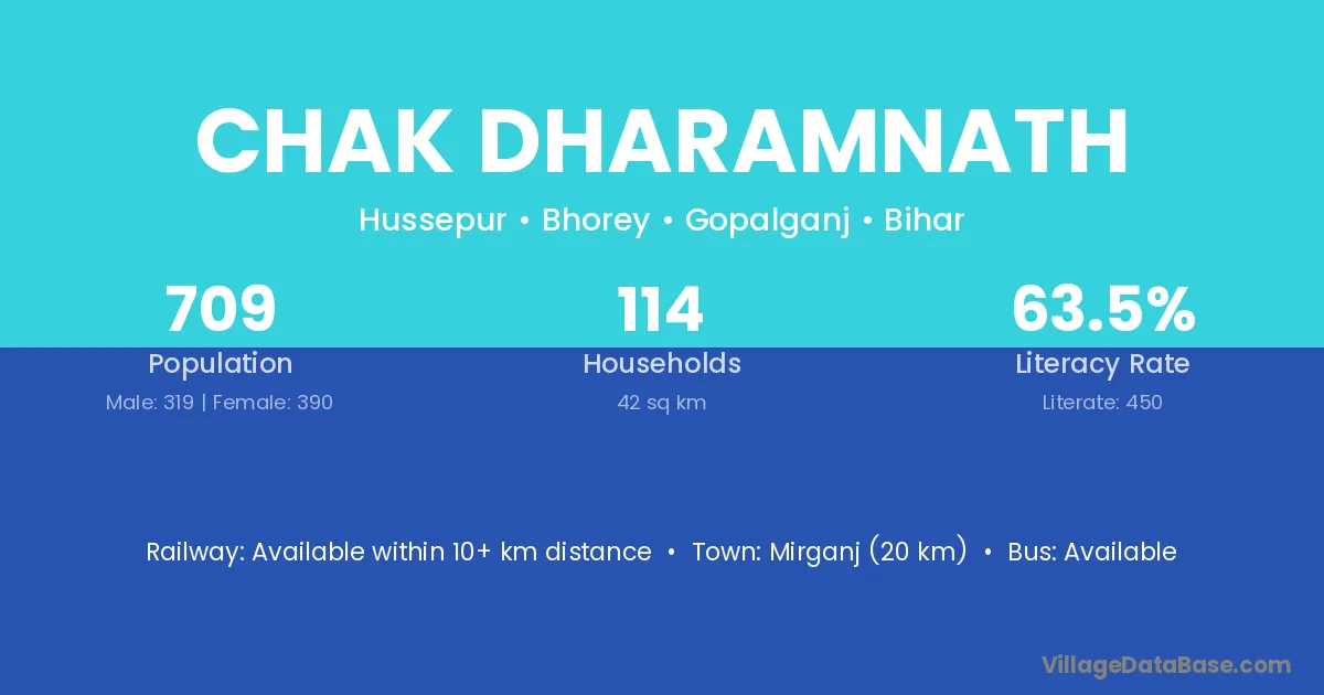 Mirganj (20 km) is the nearest town to Chak Dharamnath village for major economic activities and is located approximately 20 km away.