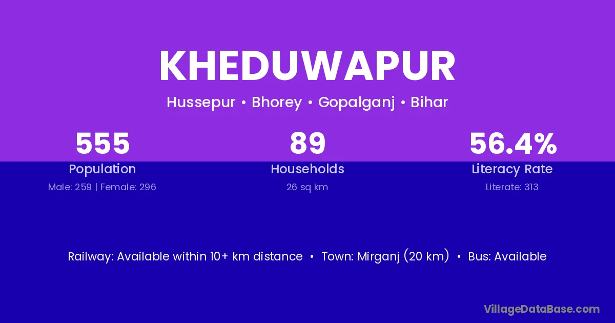 Mirganj (20 km) is the nearest town to Kheduwapur village for major economic activities and is located approximately 20 km away.