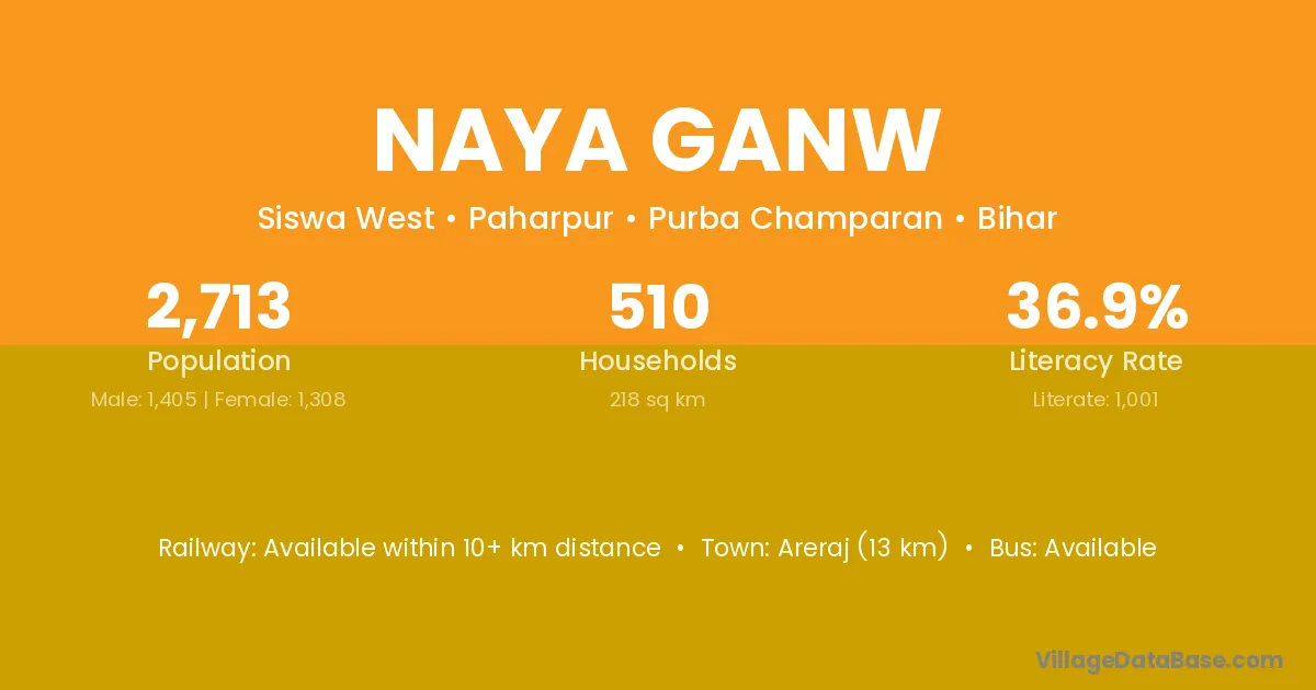 Kataiya (15 km) is the nearest town to Naya Ganw village for major economic activities and is located approximately 15 km away.