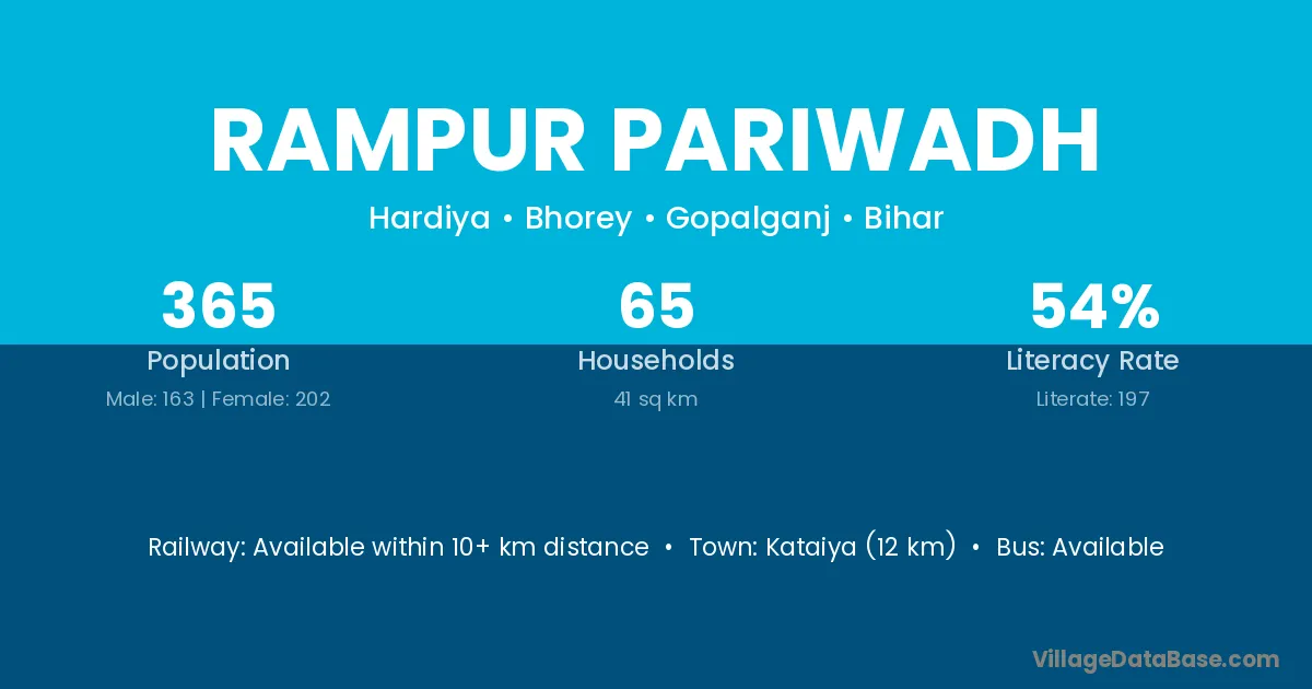 Kataiya (12 km) is the nearest town to Rampur Pariwadh village for major economic activities and is located approximately 12 km away.
