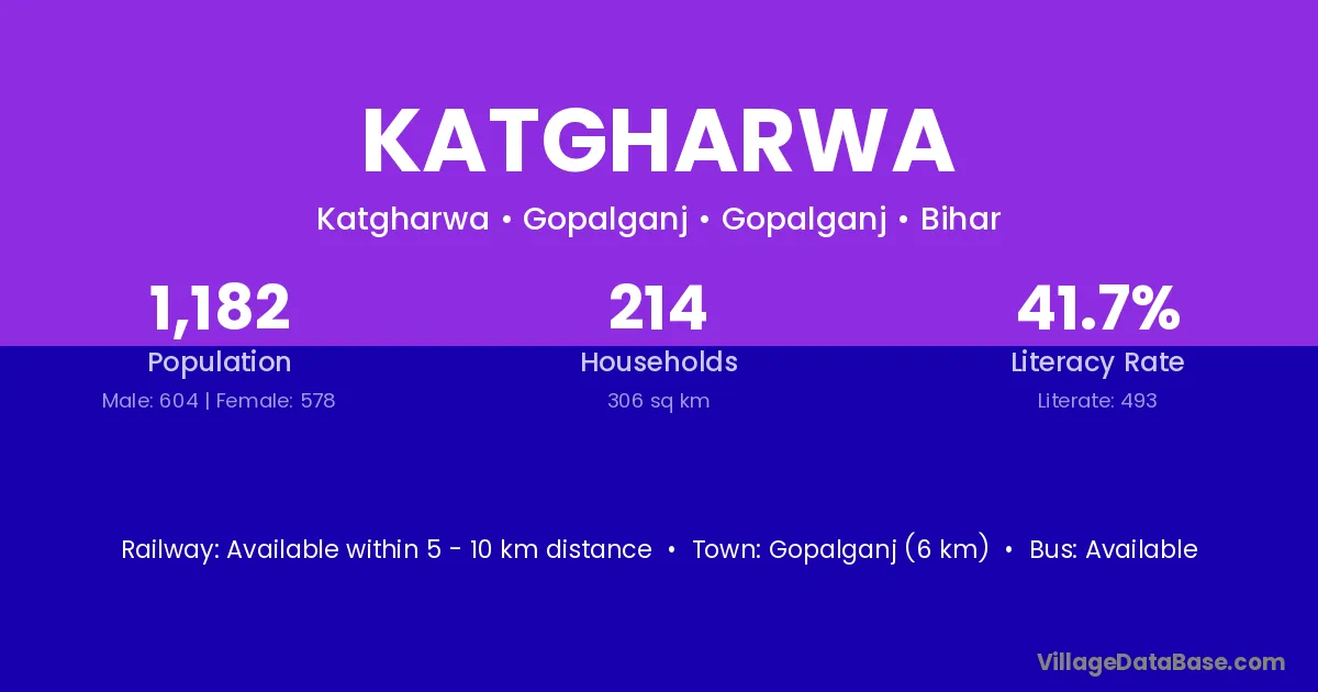 Gopalganj (6 km) is the nearest town to Katgharwa village for major economic activities and is located approximately 6 km away.