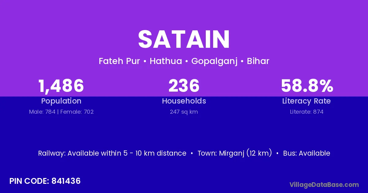 Mirganj (12 km) is the nearest town to Satain village for major economic activities and is located approximately 12 km away.