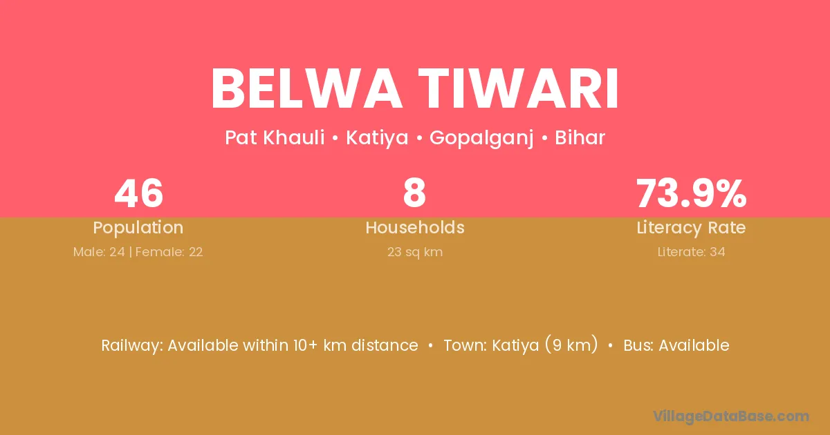 Katiya (9 km) is the nearest town to Belwa Tiwari village for major economic activities and is located approximately 9 km away.