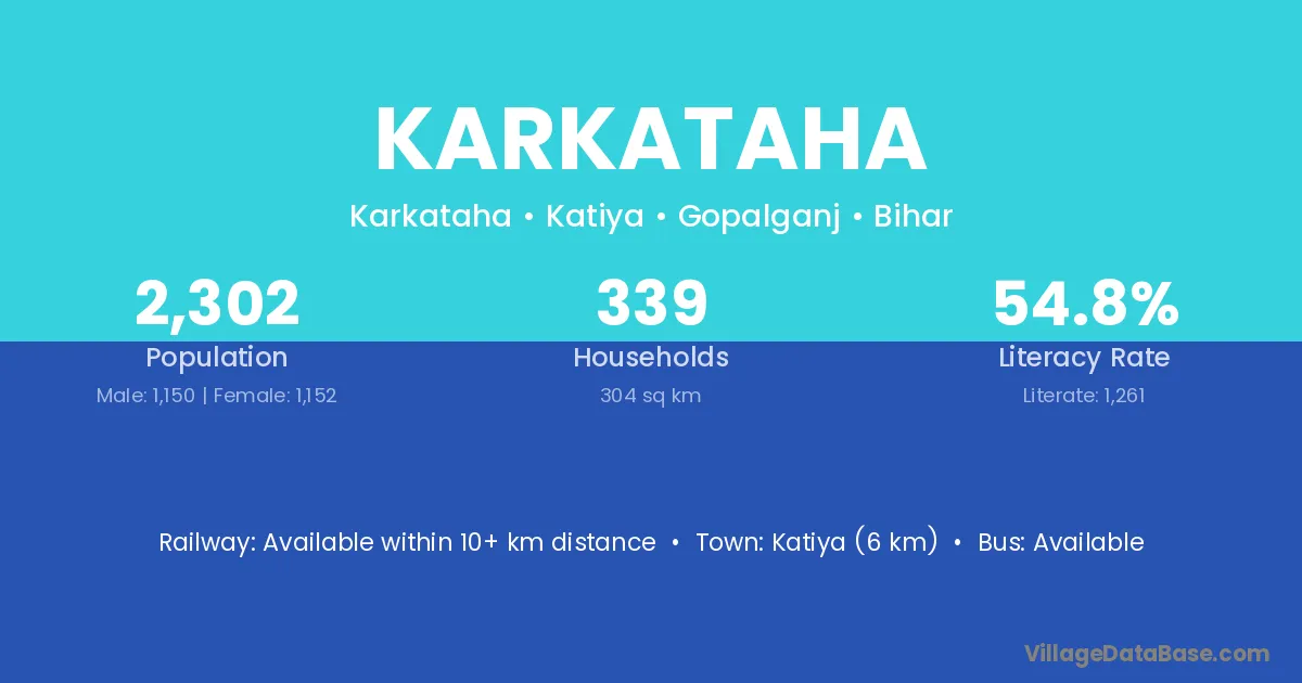 Katiya (6 km) is the nearest town to Karkataha village for major economic activities and is located approximately 6 km away.