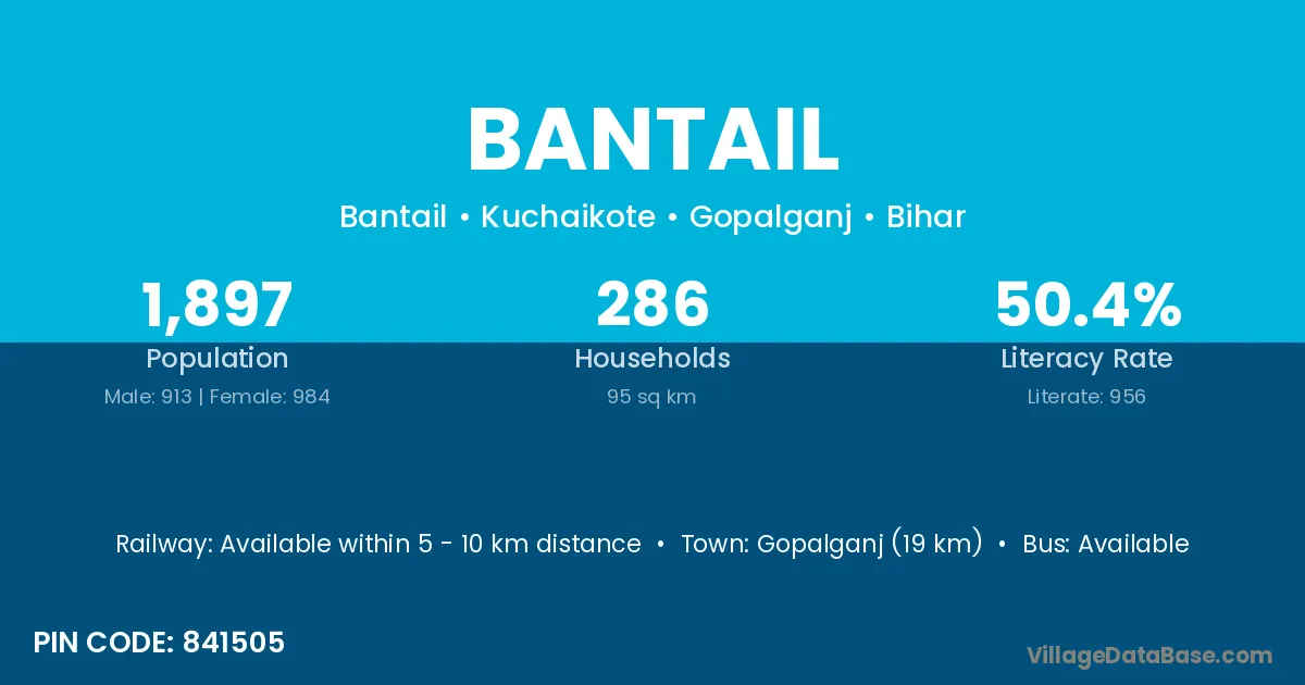 Gopalganj (19 km) is the nearest town to Bantail village for major economic activities and is located approximately 19 km away.