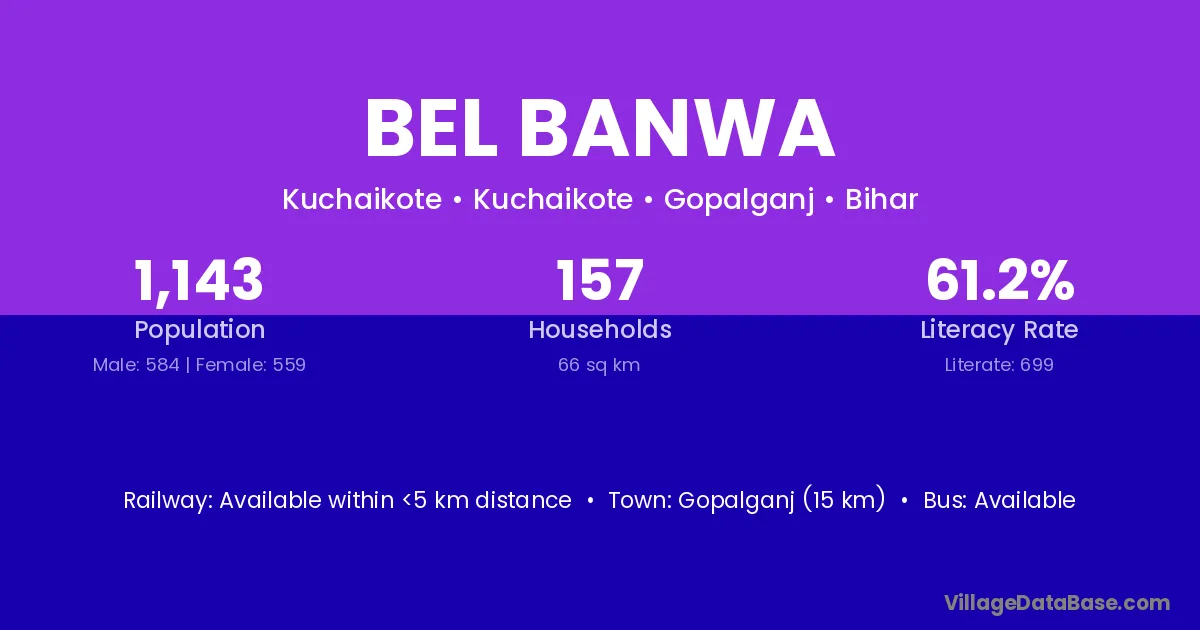 Gopalganj (15 km) is the nearest town to Bel Banwa village for major economic activities and is located approximately 15 km away.