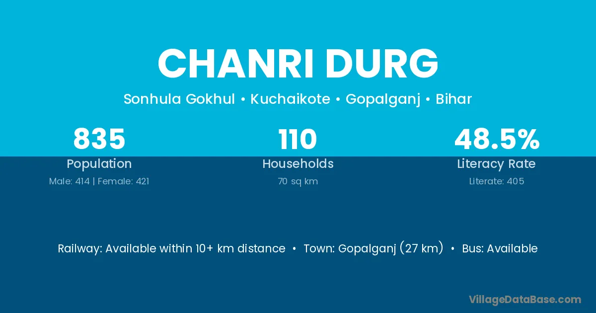 Gopalganj (27 km) is the nearest town to Chanri Durg village for major economic activities and is located approximately 27 km away.