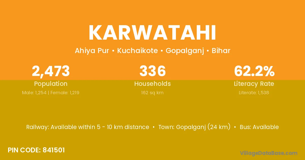 Gopalganj (24 km) is the nearest town to Karwatahi village for major economic activities and is located approximately 24 km away.