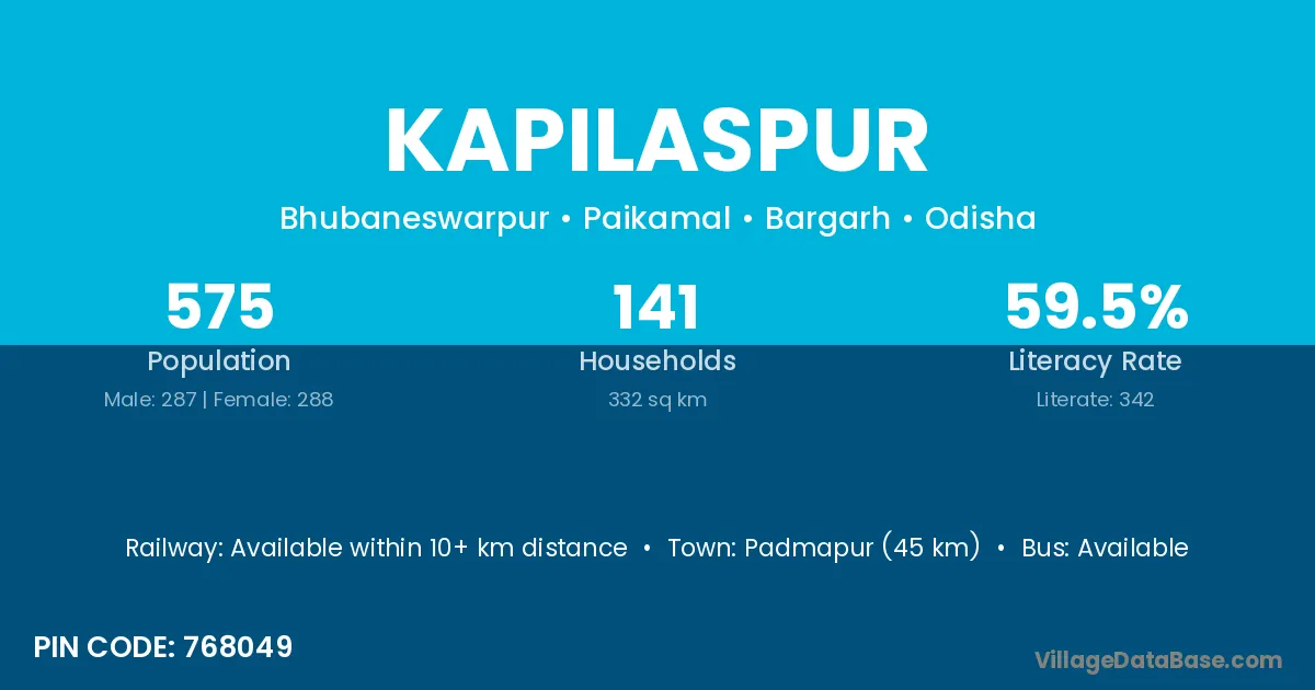 Kapilaspur village has a total population of 2,172 people, of which 1,120 are males and 1,052 are females.