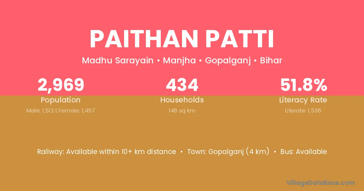 Gopalganj (4 km) is the nearest town to Paithan Patti village for major economic activities and is located approximately 4 km away.