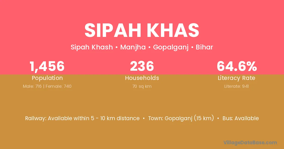 Gopalganj (15 km) is the nearest town to Sipah Khas village for major economic activities and is located approximately 15 km away.