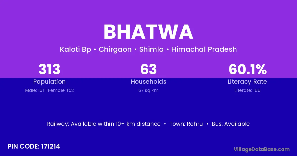 Bhatwa village has a total population of 1,140 people, of which 559 are males and 581 are females.