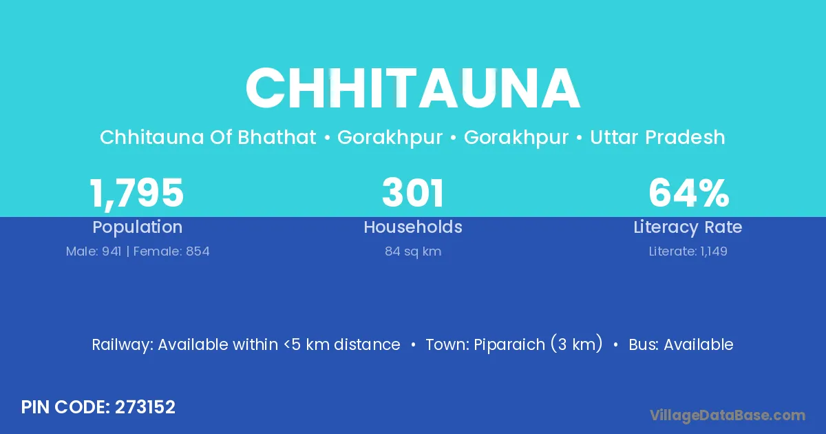 Katia (15 km) is the nearest town to Chhitauna village for major economic activities and is located approximately 15 km away.