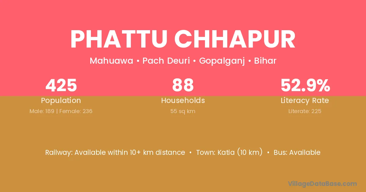 Phattu Chhapur village has a total population of 425 people, of which 189 are males and 236 are females.