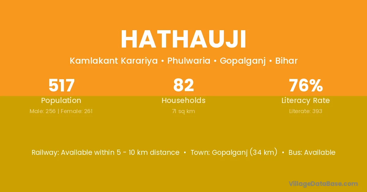 Gopalganj (34 km) is the nearest town to Hathauji village for major economic activities and is located approximately 34 km away.