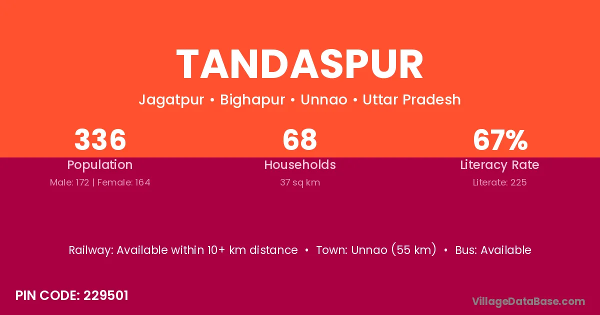 Tandaspur village has a total population of 970 people, of which 478 are males and 492 are females.
