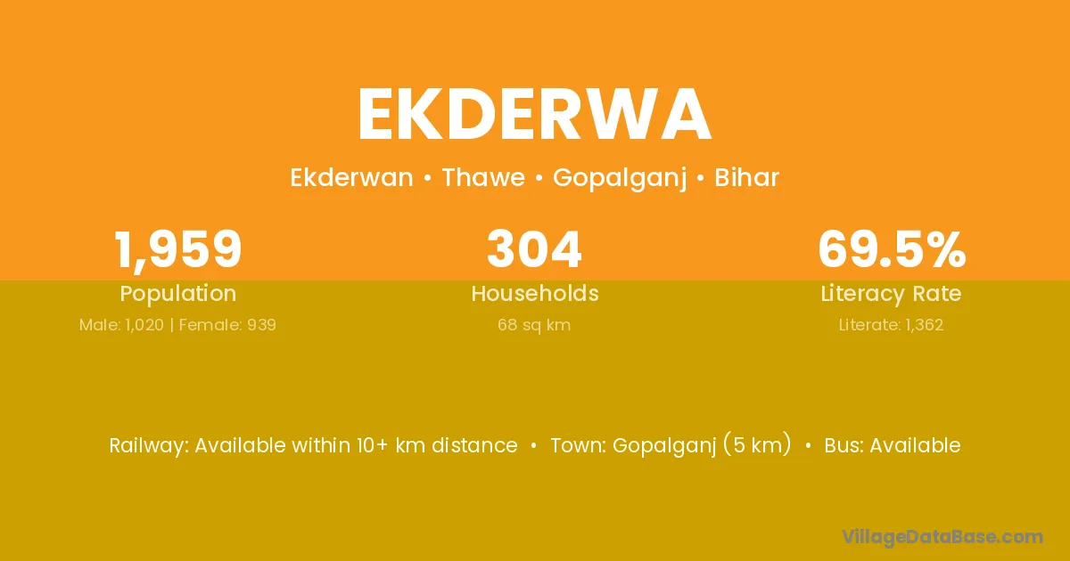 Gopalganj (5 km) is the nearest town to Ekderwa village for major economic activities and is located approximately 5 km away.