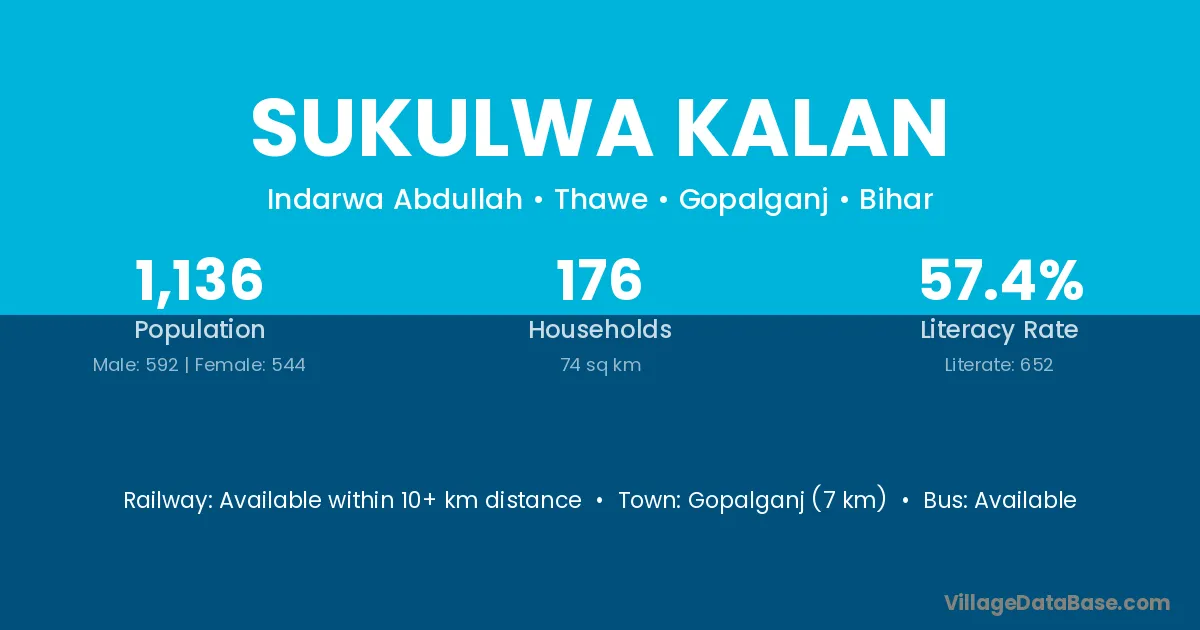 Gopalganj (7 km) is the nearest town to Sukulwa Kalan village for major economic activities and is located approximately 7 km away.