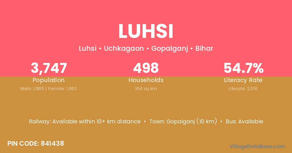 Gopalganj (10 km) is the nearest town to Luhsi village for major economic activities and is located approximately 10 km away.