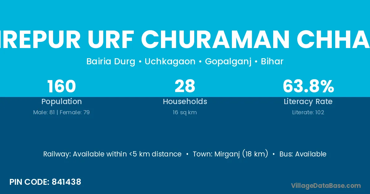 Panrepur Urf Churaman Chhapra village has a total population of 160 people, of which 81 are males and 79 are females.