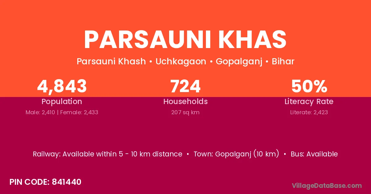 According to Census 2011 information, the village code of Parsauni Khas village is 841440.