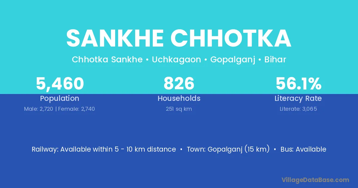 Gopalganj (15 km) is the nearest town to Sankhe Chhotka village for major economic activities and is located approximately 15 km away.