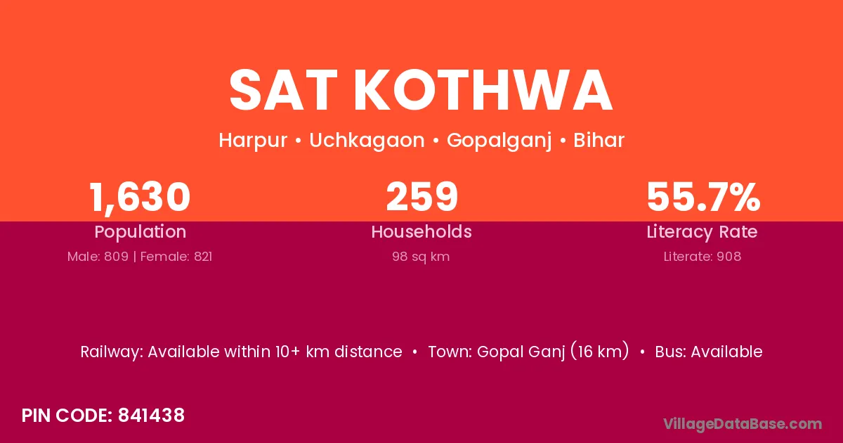 Gopal Ganj (16 km) is the nearest town to Sat Kothwa village for major economic activities and is located approximately 16 km away.