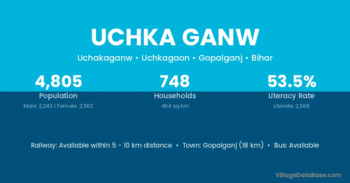 Gopalganj (18 km) is the nearest town to Uchka Ganw village for major economic activities and is located approximately 18 km away.