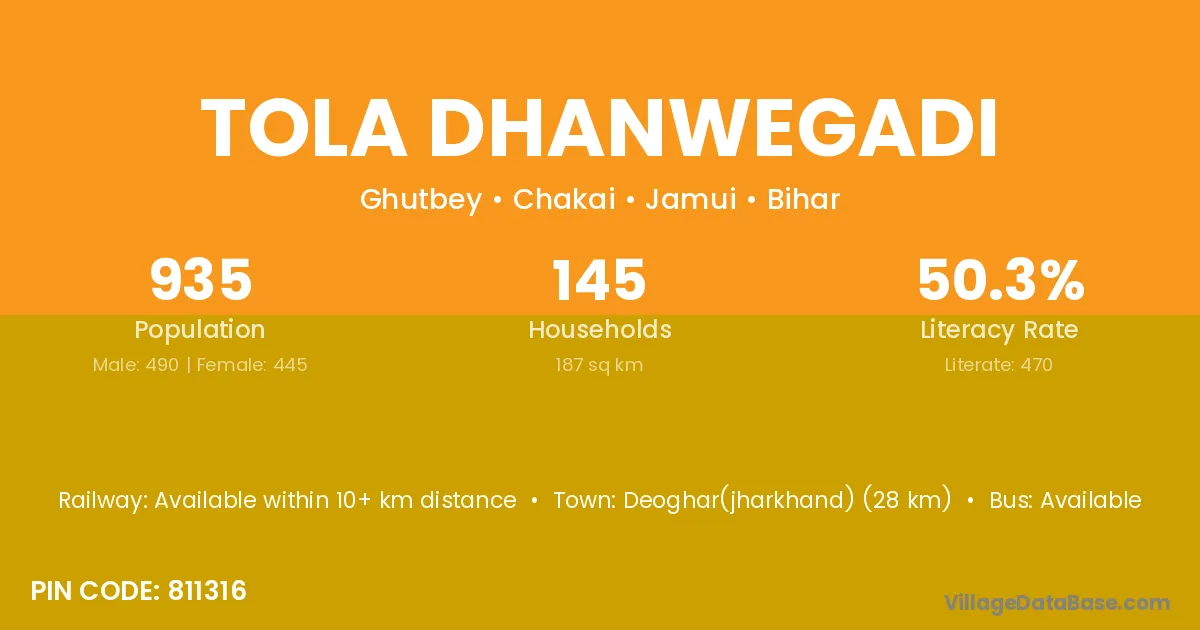 Tola Dhanwegadi village is located in the Chakai Subdivision of the Jamui district in Bihar .
