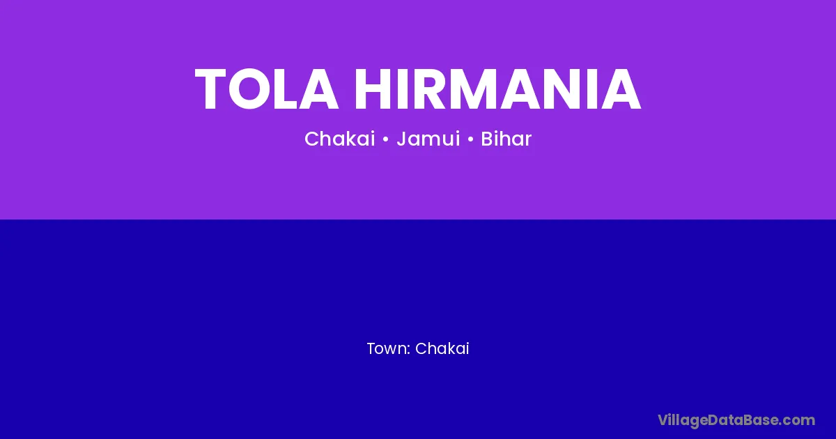 Tola Hirmania village is located in the Chakai Subdivision of the Jamui district in Bihar .