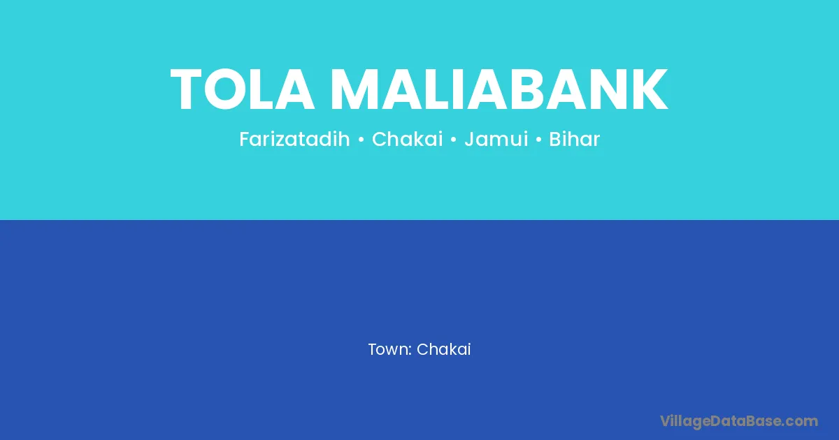 Tola Maliabank village is located in the Chakai Subdivision of the Jamui district in Bihar .