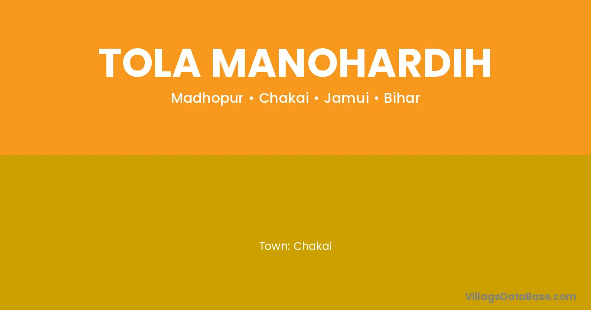 Tola Manohardih village is located in the Chakai Subdivision of the Jamui district in Bihar .
