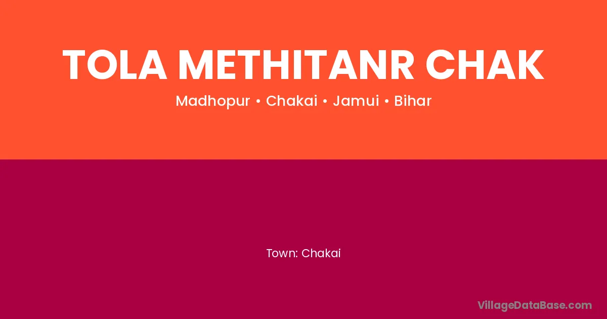 Tola Methitanr Chak village is located in the Chakai Subdivision of the Jamui district in Bihar .
