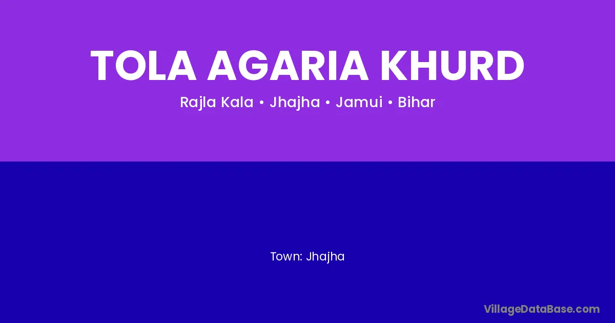 Tola Agaria Khurd village is located in the Jhajha Subdivision of the Jamui district in Bihar .