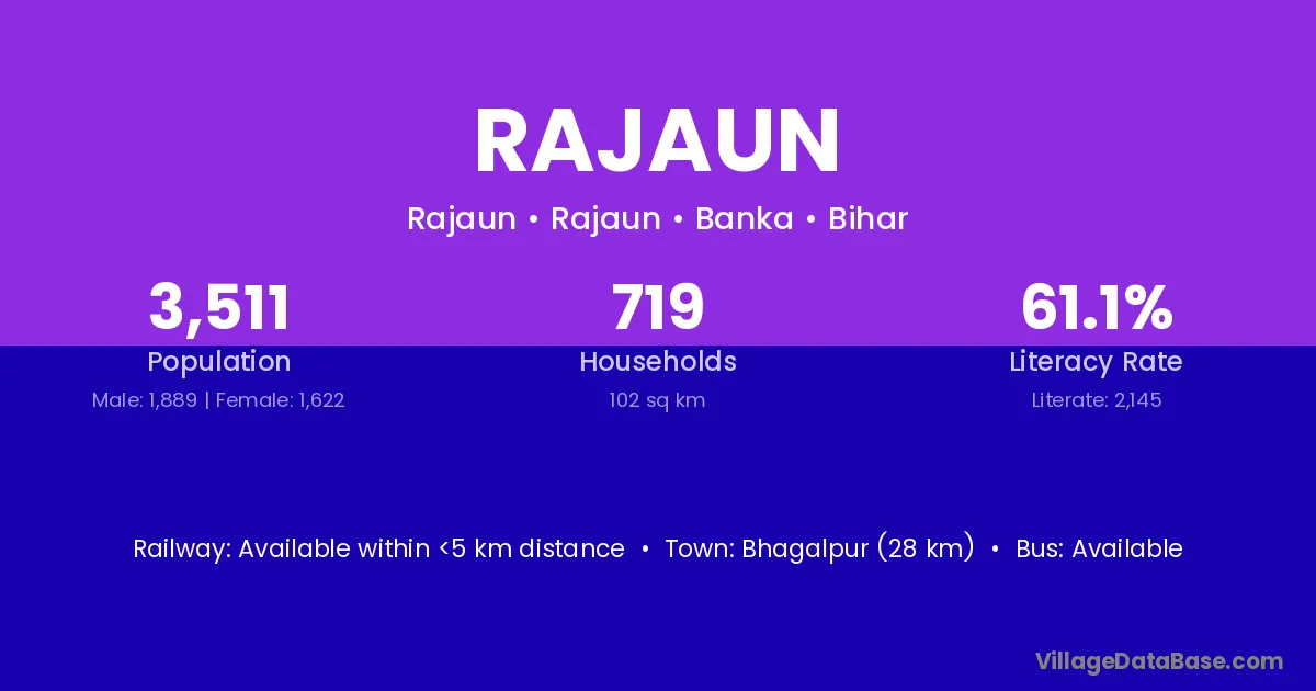 Jamui (17 km) is the nearest town to Rajaun village for major economic activities and is located approximately 17 km away.