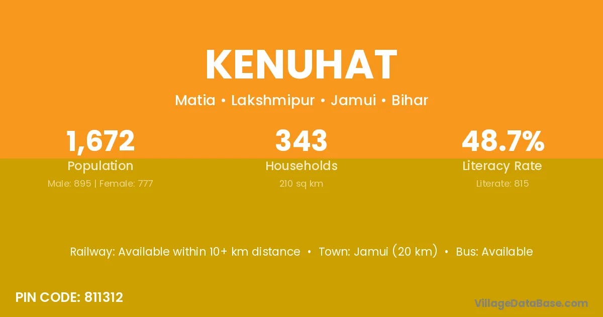 Jamui (20 km) is the nearest town to Kenuhat village for major economic activities and is located approximately 20 km away.