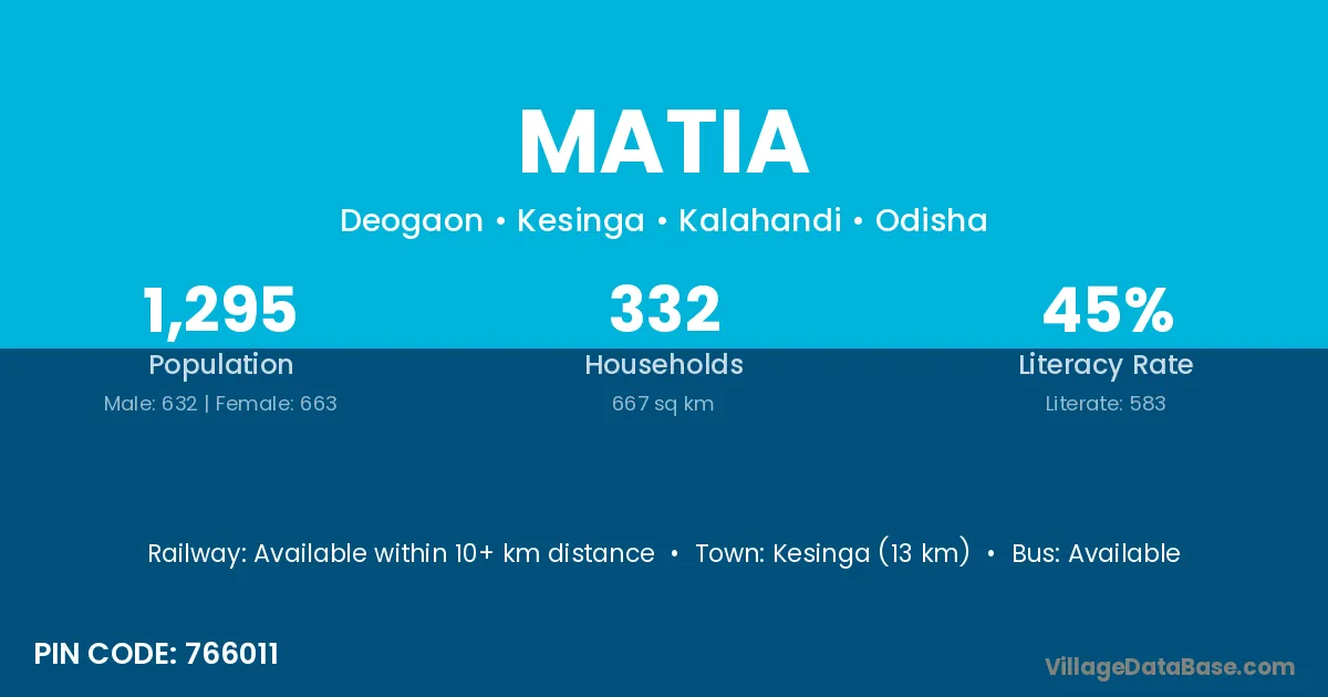 Jamui (18 km) is the nearest town to Matia village for major economic activities and is located approximately 18 km away.