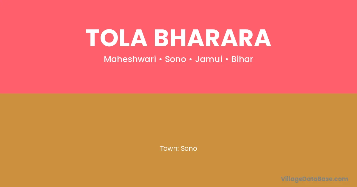 Tola Bharara village is located in the Sono Subdivision of the Jamui district in Bihar .