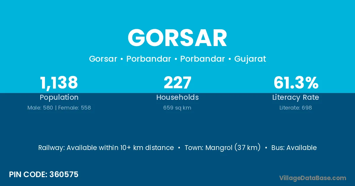 Gorsar village has a total population of 2,488 people, of which 1,280 are males and 1,208 are females.