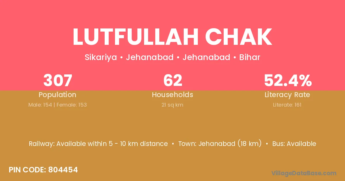 Lutfullah Chak village has a total population of 307 people, of which 154 are males and 153 are females.