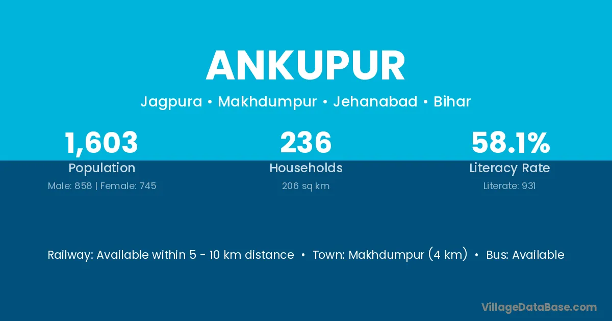 Makhdumpur (4 km) is the nearest town to Ankupur village for major economic activities and is located approximately 4 km away.