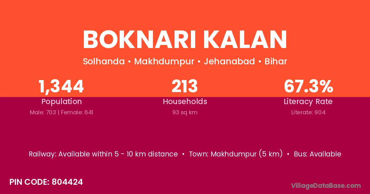 Makhdumpur (5 km) is the nearest town to Boknari Kalan village for major economic activities and is located approximately 5 km away.