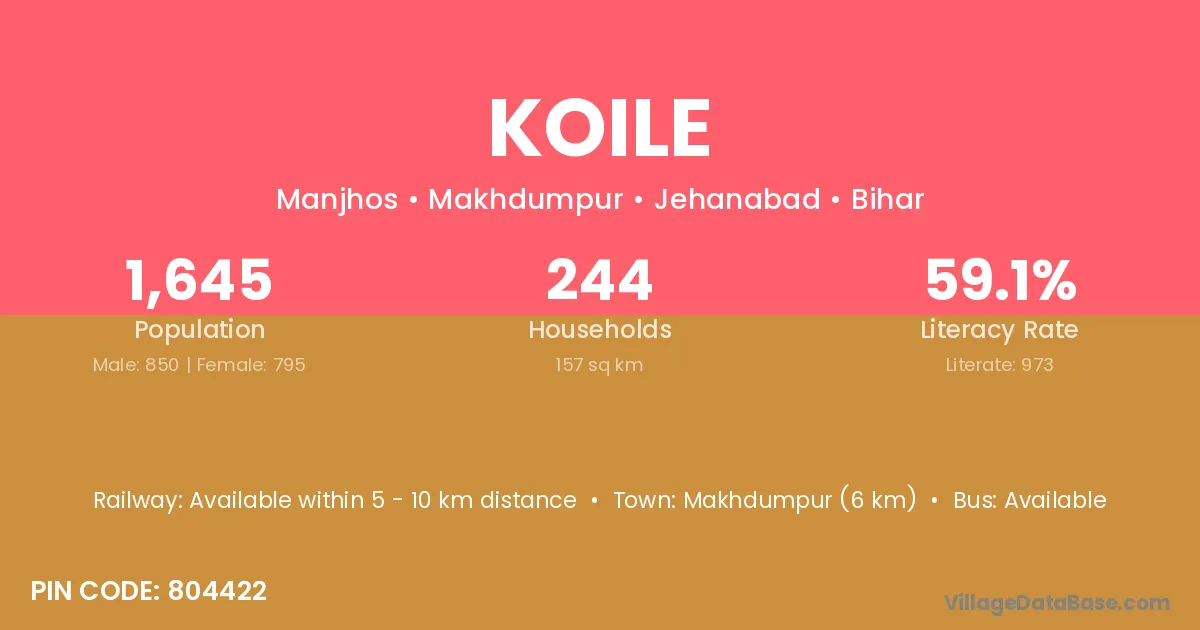 Makhdumpur (6 km) is the nearest town to Koile village for major economic activities and is located approximately 6 km away.