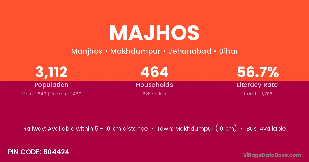 Makhdumpur (10 km) is the nearest town to Majhos village for major economic activities and is located approximately 10 km away.